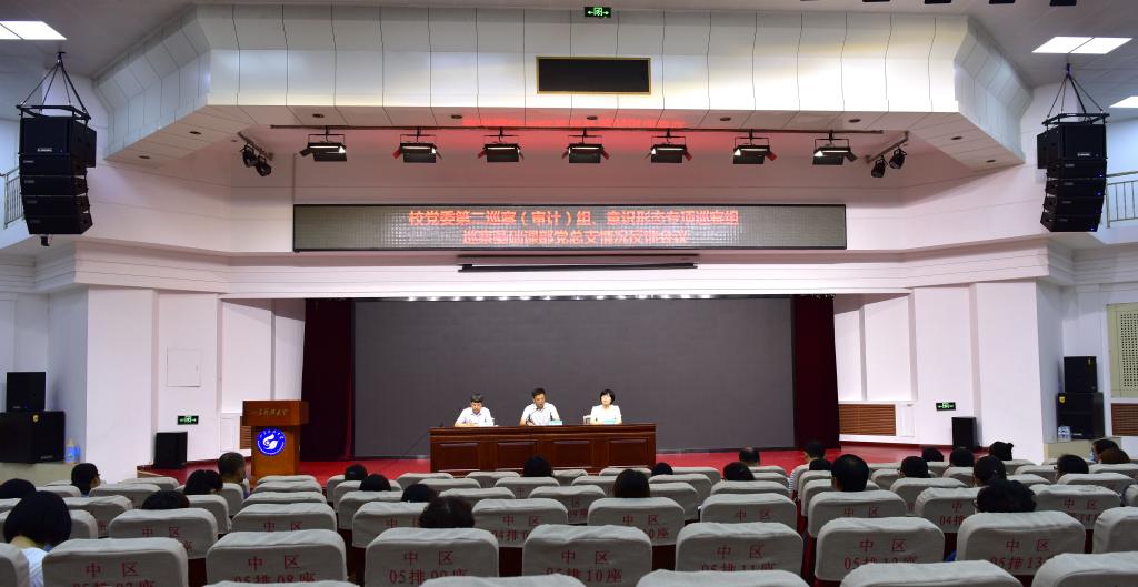 7月16日上午,校党委第二巡察(审计)组、意识形态工作专项巡察组巡察基础课部党总支意见反馈会在图书馆报告厅召开。第二巡察组副组长李垂文,意识形态工作专项巡察组成员高一丹,第二巡察组联络员董向阳及成员陶之灵、徐丽、董俊峰、杨倩出席会议,基础课部领导班子成员和全体教职工参加了会议。会议由基础课部党总支书记管清佩主持。