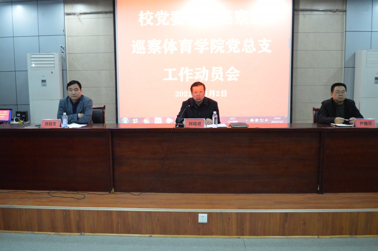 刘培进指出,巡察是巡视这一党内监督利器向基层的延伸和拓展,是推动全面从严治党向纵深发展的具体举措。本次巡察将以习近平新时代中国特色社会主义思想为指导,把“两个维护”作为根本任务,全面贯彻落实“发现问题、形成震慑,推动改革、促进发展”工作方针,紧扣被巡察党组织的职能责任,紧盯领导班子和关键少数,聚焦被巡察单位党组织落实党的路线方针政策、省委和学校党委重大决策部署情况,落实全面从严治党战略部署情况,落实新时代党的组织路线情况,落实巡视巡察、审计发现问题和主题教育、“未巡先改”检视问题整改情况,重点围绕党的政治建设、意识形态工作责任制落实、师德师风建设、科研和服务经济社会发展和党组织发挥作用等,深入查找政治偏差。根据工作安排,对体育学院党总支的巡察从2021年11月2日开始,为期一个月左右。