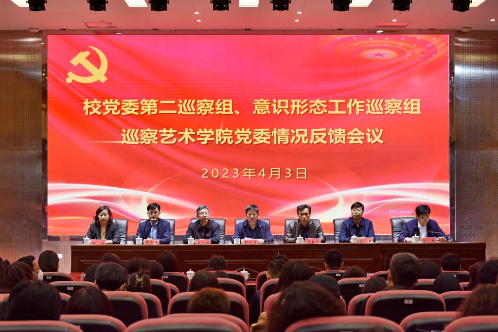 4月3日下午,校党委第二巡察组、意识形态工作专项巡察组巡察艺术学院党委情况反馈会议在J9-144报告厅召开。校党委第二巡察组组长张光福、副组长牟仁刚,意识形态工作专项巡察组组长姚桂芳,纪委(监察专员办公室)综合处处长白斌,组织部正处级组织员徐云飞,艺术学院党委副书记、院长杨梅及巡察组成员出席会议。艺术学院领导班子成员、全体教职工、退休教师代表和学生代表参加会议。会议由艺术学院党委书记王凯主持。